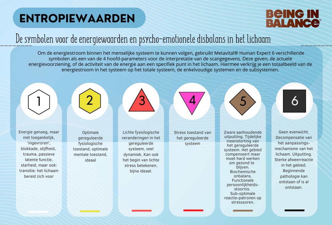 De entropie waarden (mate van stressbelasting) worden uitgedrukt in cijfers van 1 tot 6.